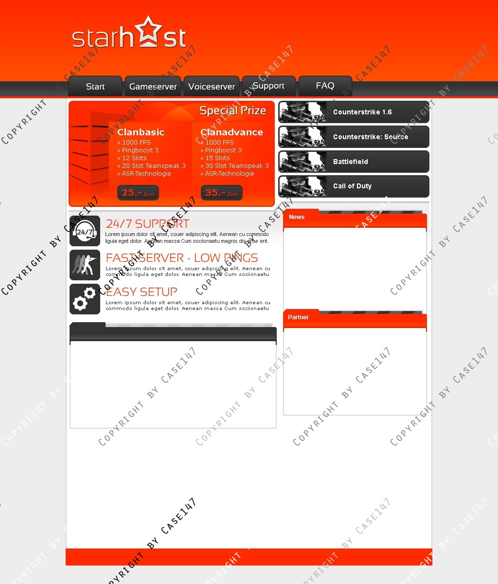 die Hosting-Webseite wurde tabellenlos in HTML/ CSS umgesetzt.